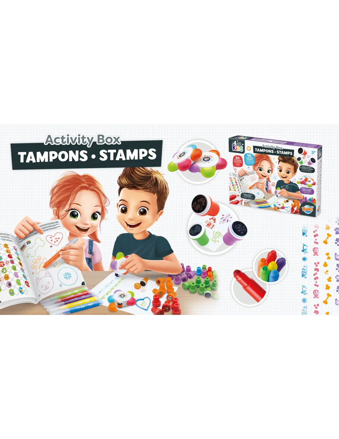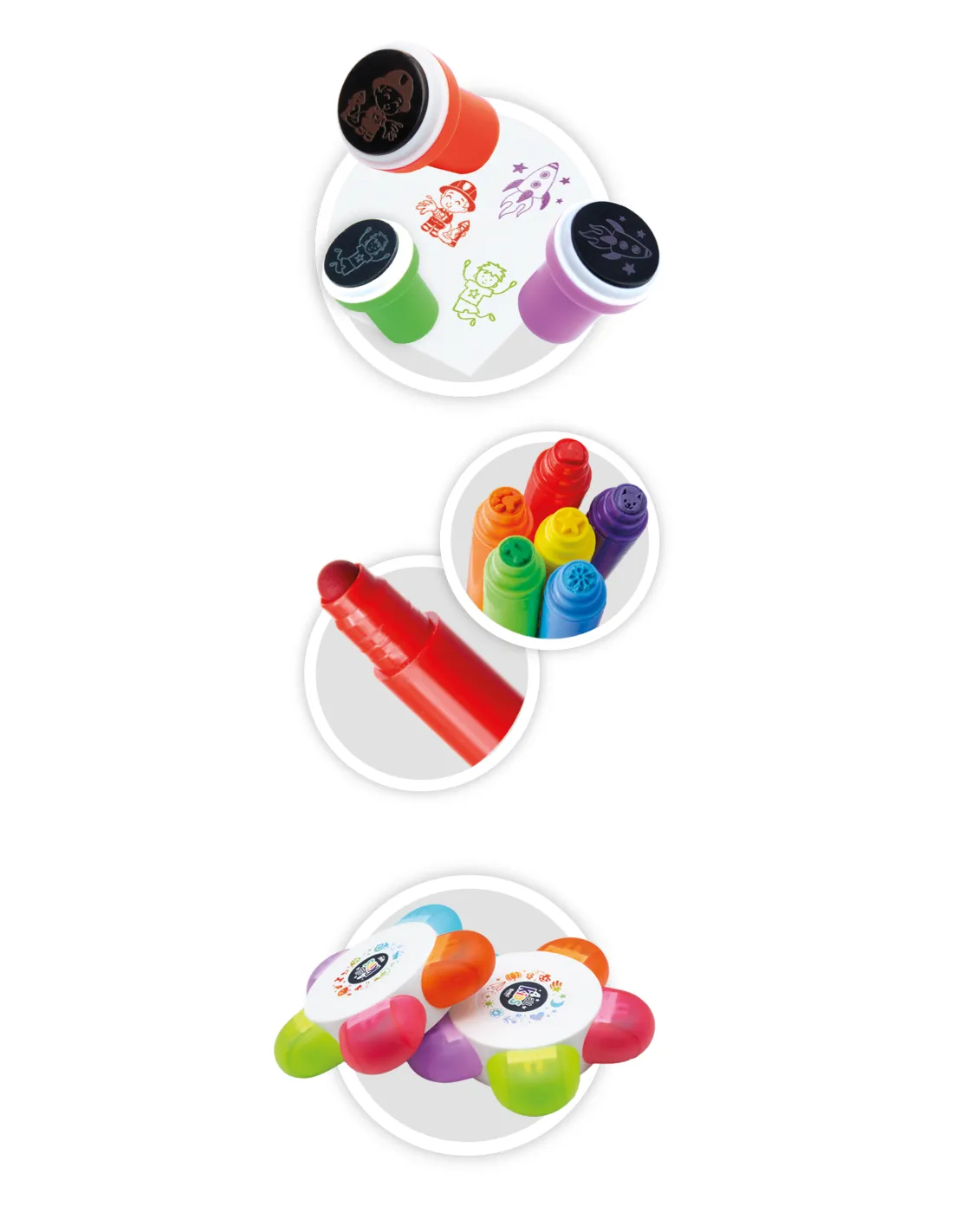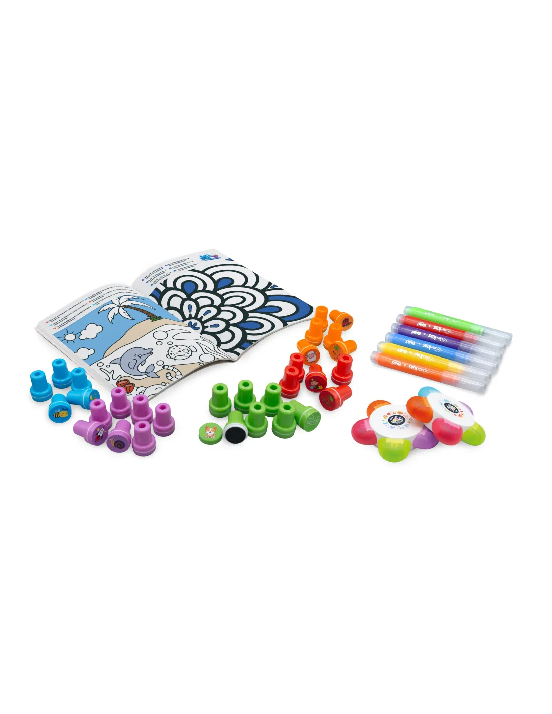 To wyjątkowy komplet dla małych artystów, który pozwala tworzyć nieograniczoną ilość kolorowych ilustracji, dekoracji i własnych dzieł sztuki. Dzięki ponad 45 różnorodnym pieczątkom oraz dołączonej książeczce aktywności, dziecko rozwija wyobraźnię, kreatywność i zdolności manualne poprzez zabawę.