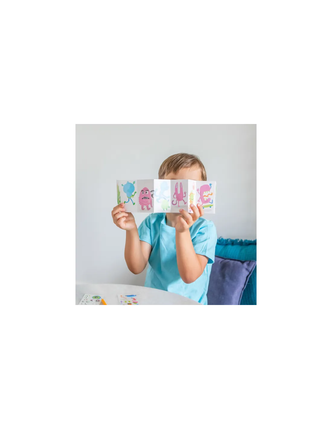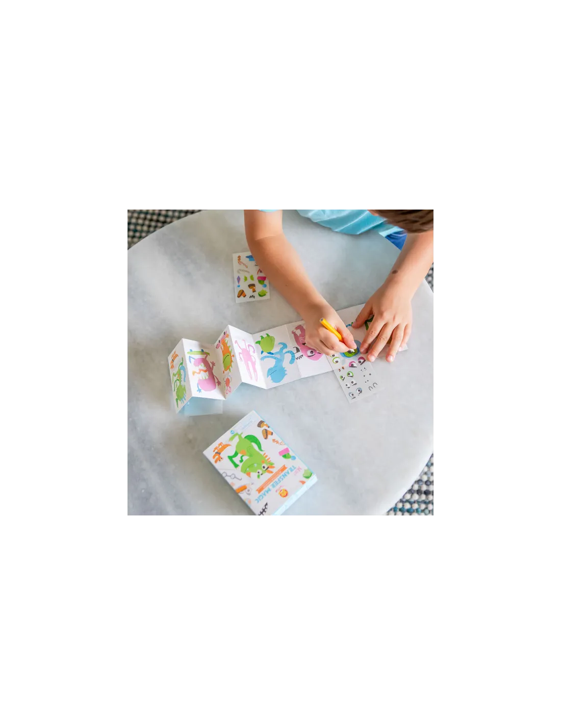 Ten poręczny zestaw pozwala maluchom projektować sympatyczne potworki, wykorzystując łatwe w użyciu kolorowe kalkomanie.