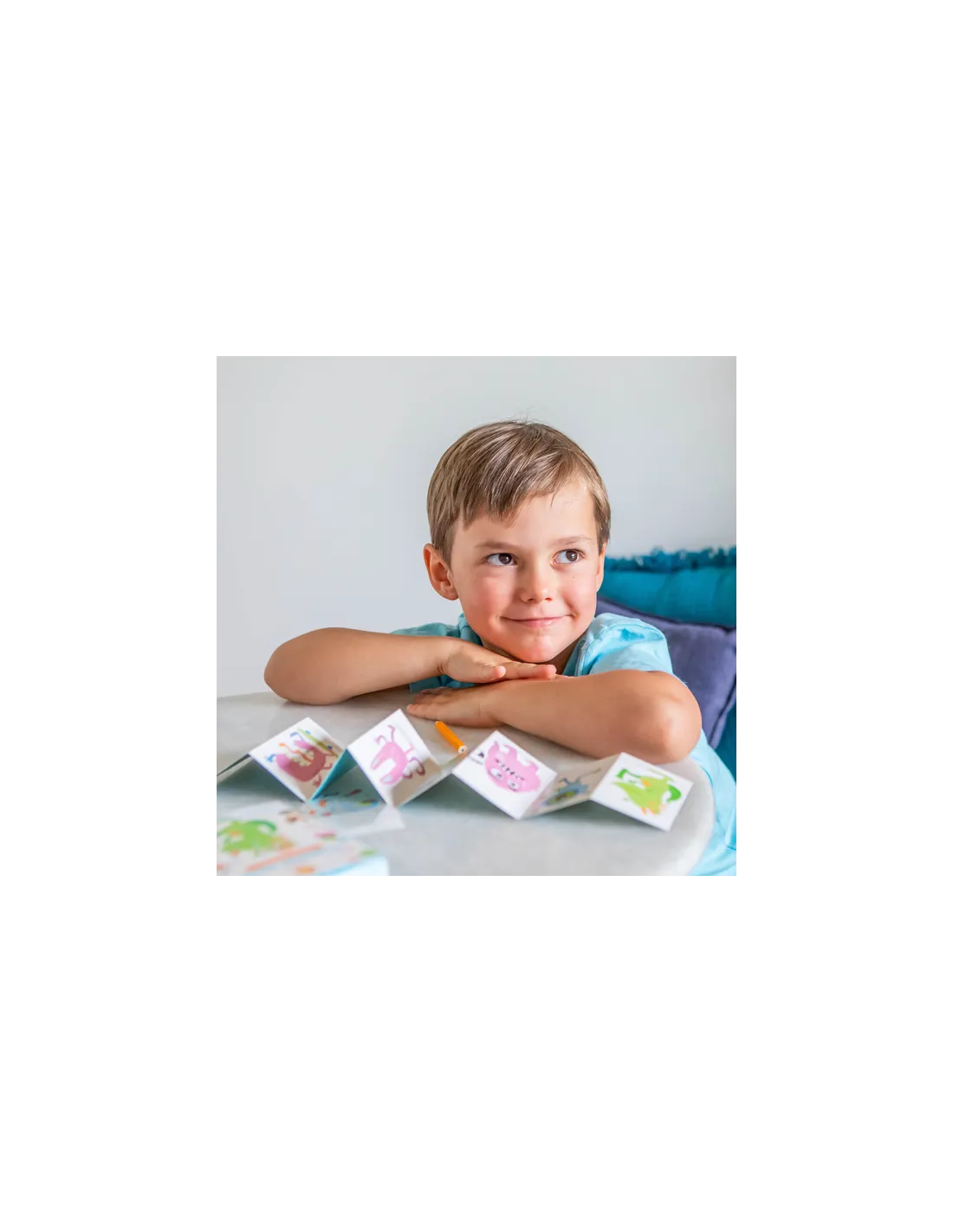 Wystarczy wybrać wybrany arkusz, odkleić papier podkładowy, przyłożyć kalkomanię do szablonu postaci i delikatnie potrzeć dołączonym ołówkiem. Efekt? Barwne, zabawne stworki, które rozwijają kreatywność i zdolności manualne dziecka. Całość została zaprojektowana z myślą o wygodzie — zestaw jest lekki, kompaktowy i doskonale sprawdzi się w podróży, restauracji, samochodzie czy w domu.