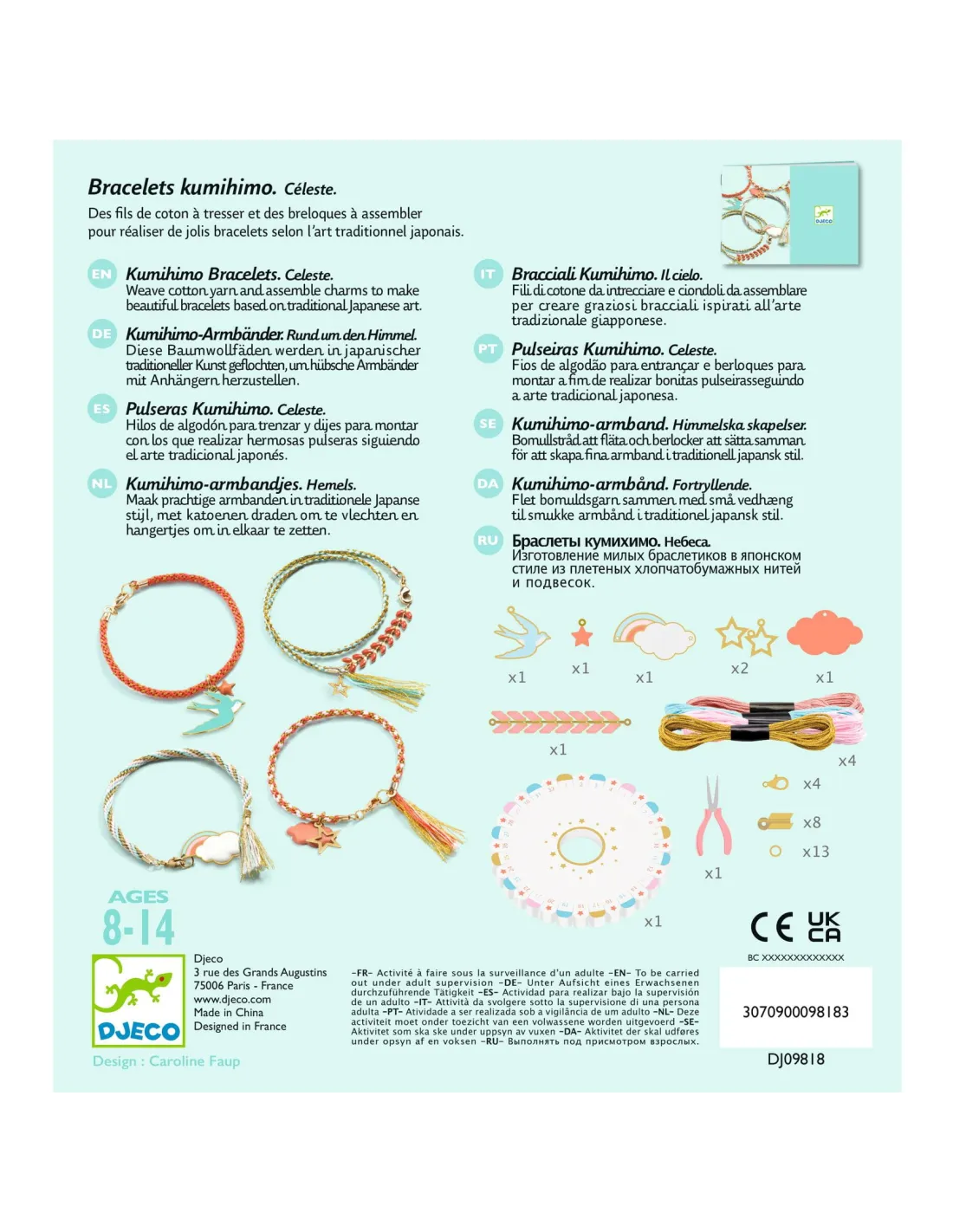 Zestaw do tworzenia biżuterii CELESTE Djeco to idealny prezent dla dzieci w wieku 6-11 lat, które chcą rozwijać kreatywność i manualne umiejętności. Dzięki temu zestawowi dzieci mogą samodzielnie tworzyć kolorowe bransoletki, odkrywając japońską sztukę splotu kumihimo w przyjaznej i łatwej formie.