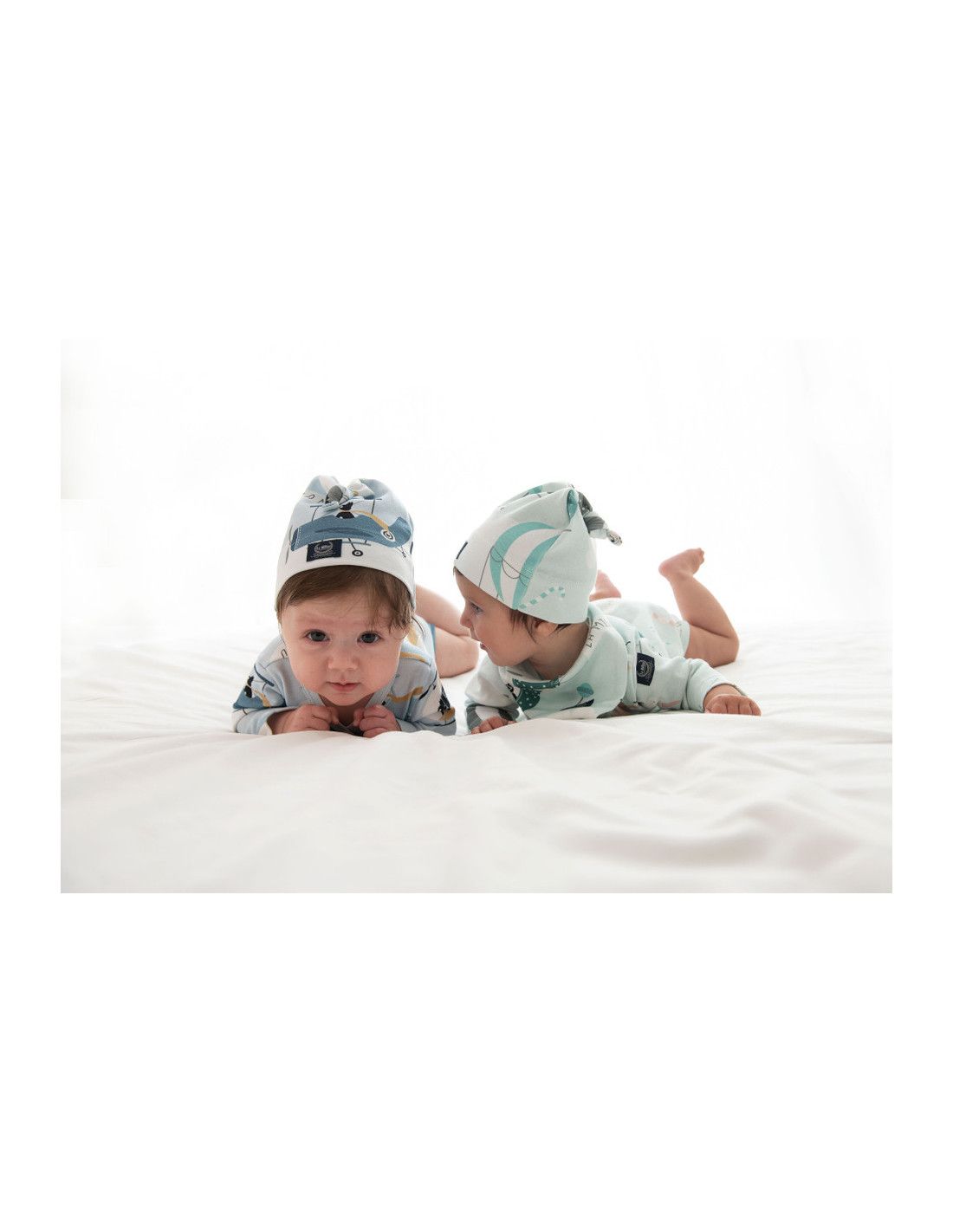 Produkty uszyte są z w całości bawełny organicznej posiadającej certyfikat jakości Oeko-Tex standard 100, a body wyposażyliśmy w bezniklowe napki, tak by wrażliwa skóra dziecka była zawsze bezpieczna. Delikatna i miękka dzianina zapewnia jednocześnie komfort termiczny i przewiewność.